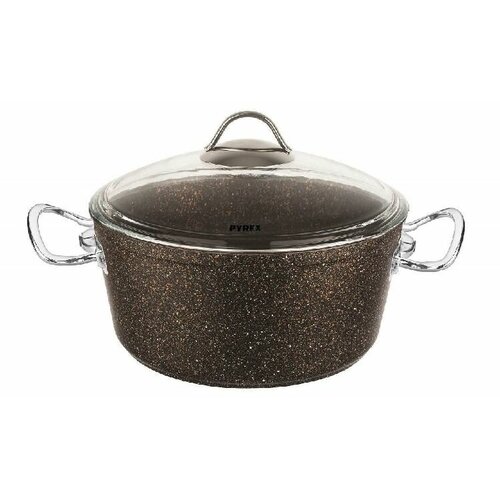 Жаровня титан & гранит (камень), 3 л, d=26, индукция, стеклянная крышка, антипригарное покрытие
