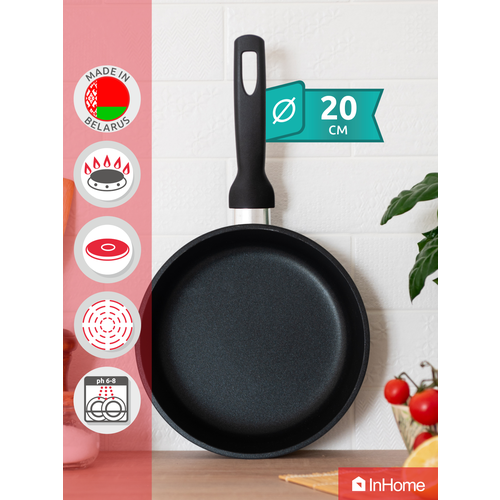 Сковорода InHome классическая литая толстостенная с антипригарным покрытием, диаметр 20 см