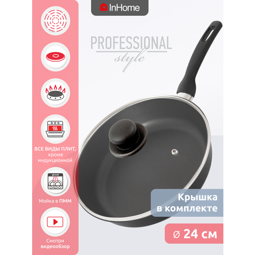 Сковорода литая с антипригарным покрытием классическая InHome, IVFP/124 + стеклянная крышка