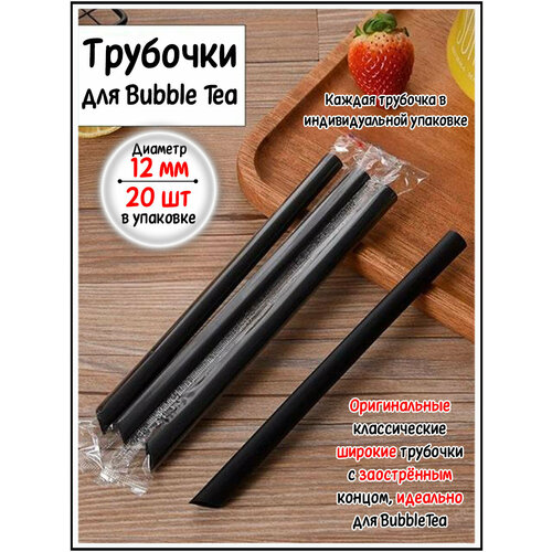 Трубочки широкие заостренные для бабл ти коктейлей и смузи черные 20 шт.
