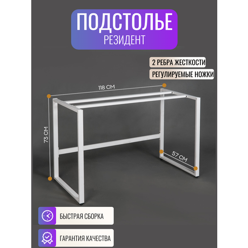 Подстолье металлическое резидент 118х57х75,5 см, подстолье для стола из металла в стиле лофт белое матовое