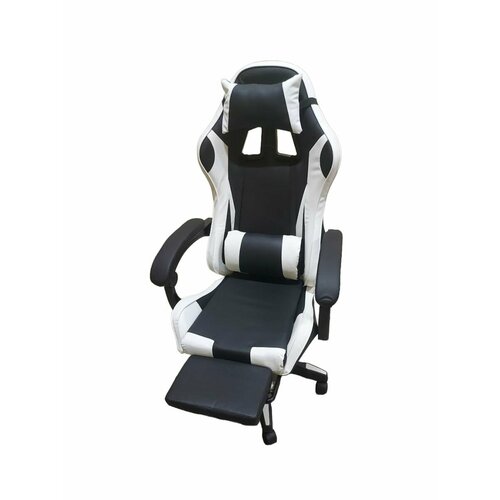 Кресло компьютерное игровое геймерское Classmark FT-088 офисное с подушками для спины и шеи на колесиках, черно-белое, газлифт, экокожа