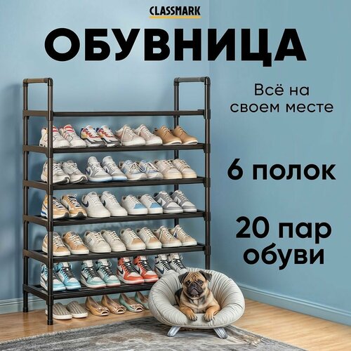 Обувница для прихожей Classmark этажерка для обуви, металлическая, полка в коридор, 6 отделений, открытая