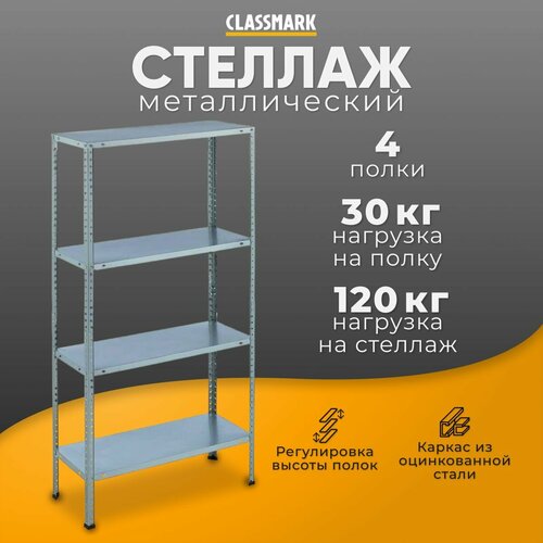 Стеллаж металлический Classmark напольный лофт, этажерка и система хранения для дома и гаража, мастерской, подставка для цветов напольная, полка для рассады и обуви, размеры 75х30х150 см, 4 полки