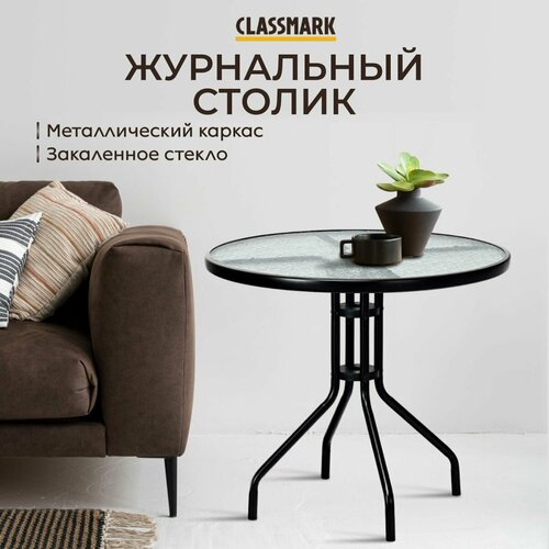 Стол кухонный и журнальный стеклянный обеденный Classmark 60х70 см кофейный или садовый круглый, закаленное стекло, сталь, для дома и дачи, черный