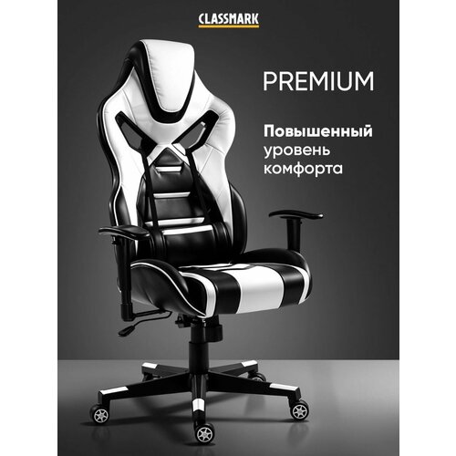 Кресло компьютерное игровое Classmark K240223-7 до 150 кг, с подлокотниками, геймерское, с подголовником, белый и черный