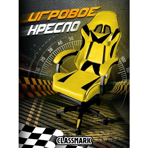 Кресло компьютерное игровое геймерское Classmark FT-7009 офисное, с подушками для спины и шеи, на колесиках, черно-желтое, экокожа, газлифт