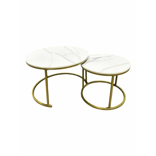 Журнальный столик круглый белый в гостиную, кофейный 2 шт