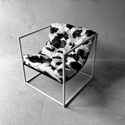 Кресло в стиле лофт Лофтовик + Черно-белый Кожзам для дома для офиса 70х70х70