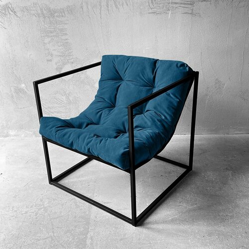 Кресло для дома и офиса "Лофтовик + синий велюр для дома для офиса 70х70х70