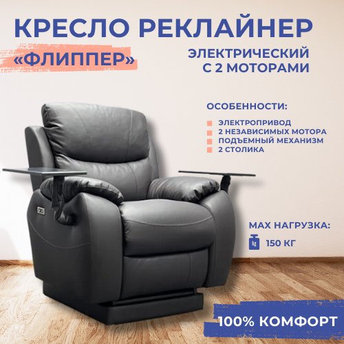 Кресло-реклайнер "Флиппер" двухмоторный, с подъемным механизмом, с двумя столами на поворотных дугах, искусственная кожа "Lincoln 418"