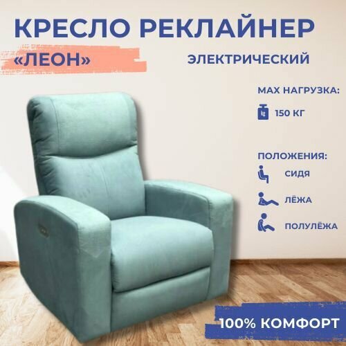 Кресло реклайнер "Леон", электрический, натуральный велюр цвет "Велютто 53", вставки "Парадигма 794"