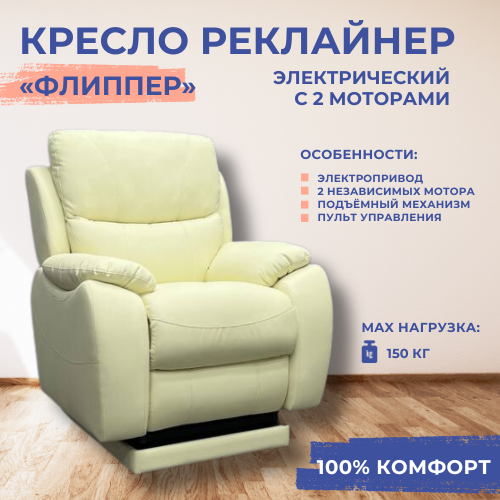 Кресло-реклайнер "Флиппер" двухмоторный с подъемным механизмом, искусственная кожа "Oregon 10"