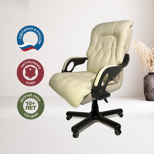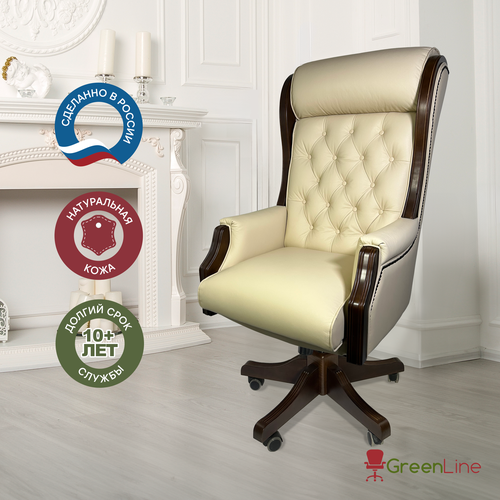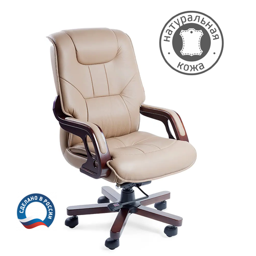 Компьютерное кресло для руководителя Аристократ, натуральная кожа, дерево, светло-бежевое