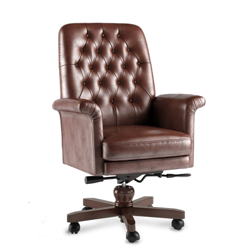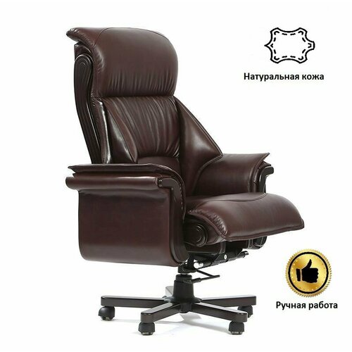 Компьютерное кресло руководителя Люцерн, натуральная кожа, дерево, коричневое