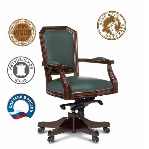 Кресло руководителя Берн, натуральная кожа, массив дерева, зеленое (Pino)