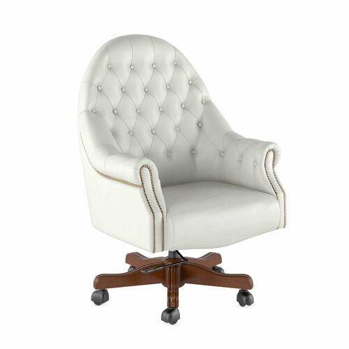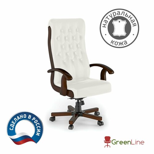 Компьютерное кресло руководителя базель, премиум, натуральная кожа, дерево, белое