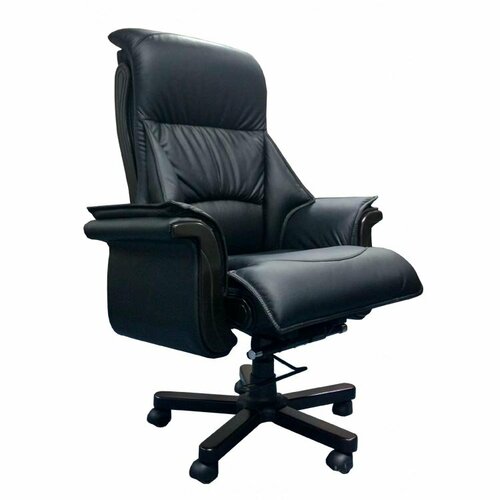Кресло руководителя Давос, натуральная кожа, массив дерева, черное