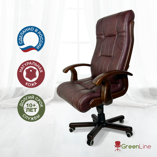 Кресло офисное для руководителя Венген, натуральная кожа, дерево, бордовое