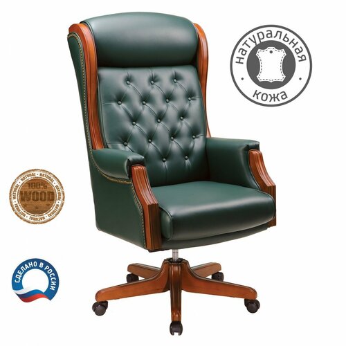 Кресло руководителя Князь (Ришар), натуральная кожа, массив дерева, зеленое