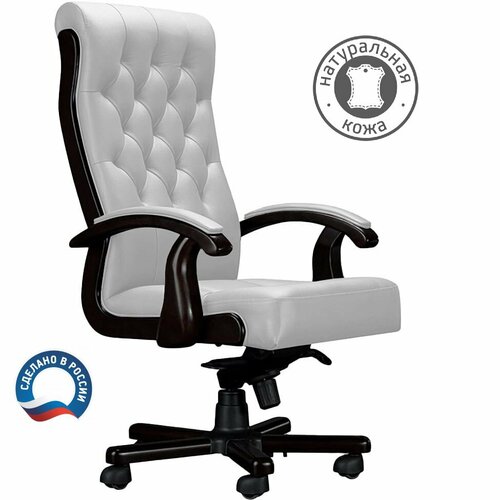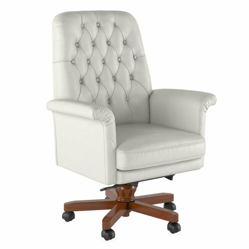 Компьютерное кресло руководителя Люцерн, натуральная кожа, дерево, белое