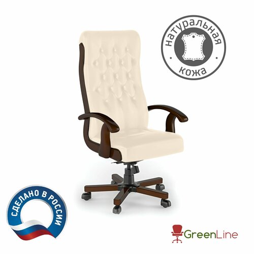 Компьютерное кресло руководителя Берн с накладками, натуральная кожа, дерево, белое (Latte)