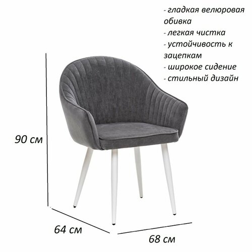Стулья для кухни 2 штуки, Стул кухонный Арман, Каркас Белый, велюр Океан