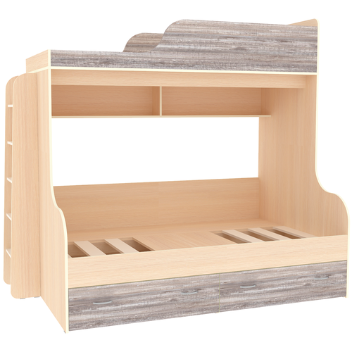 Двухъярусная кровать Дуэт-15 с деревянной лестницей Дуб Молочный Бетон