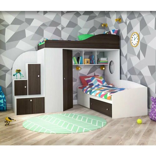 Кровать-чердак Малыш 5 (Венге, Белое дерево)