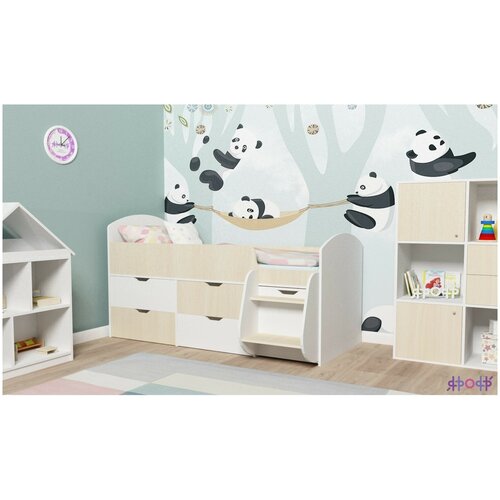 Кровать-чердак Малыш 7 (Дуб молочный, Белое дерево)