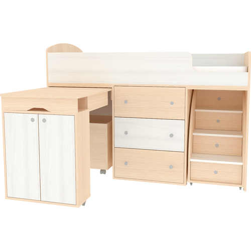 Кровать чердак Малыш Дуб Молочный - Белое Дерево