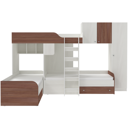 Кровать чердак Трио 2 Белое Дерево Бодего Темный