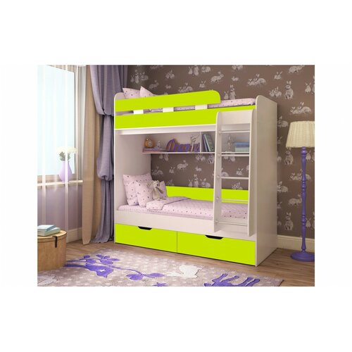 Двухъярусная кровать Юниор 5 (Лайм, Дуб молочный)