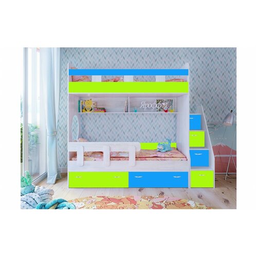 Двухъярусная кровать Юниор 1 (Лайм / Голубой, Винтерберг)