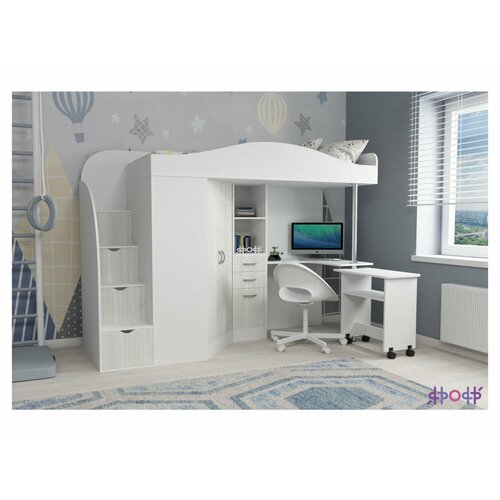 Кровать-чердак Юниор 4 (Винтерберг, Белое дерево)