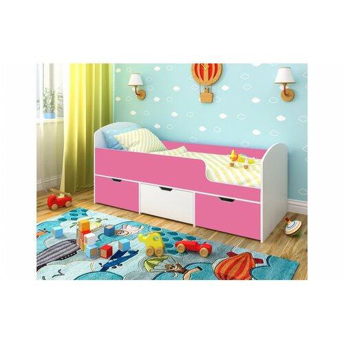 Кровать Малыш Мини (Розовый, Белое дерево)