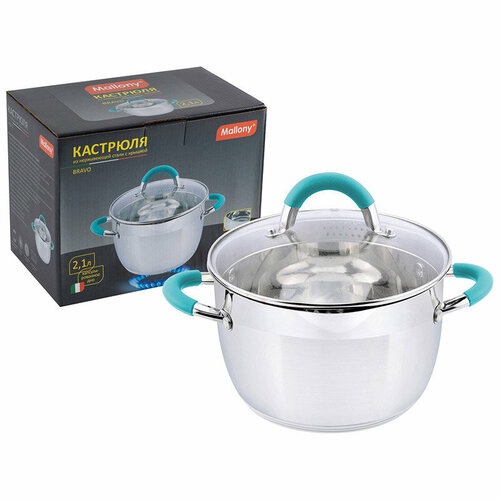 Кастрюля 2.9л из нержавеющей стали с крышкой из жаропрочного стекла BRAVO, размер 18*11,5 см