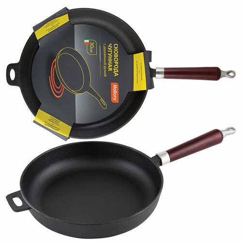 Сковорода чугунная 30 см с деревянной ручкой, высота 6.0 см, вес 4.0 кг