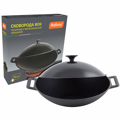 ВОК - чугунная сковорода 3.3 л с металлической крышкой, диаметр 31 см, 37*31*16,9 см, основание 12 см. вес 3.3 кг