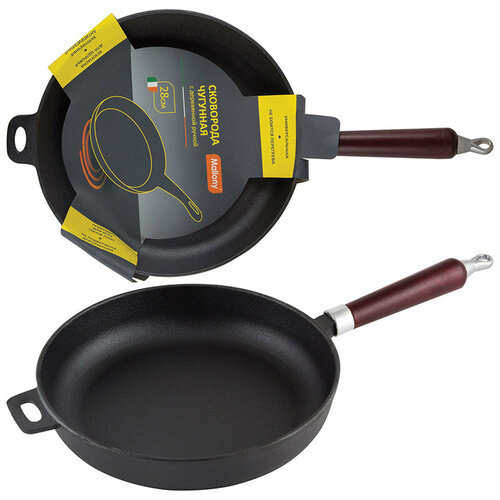 Сковорода чугунная 26 см с деревянной ручкой, высота 5.0 см, вес 2.8 кг