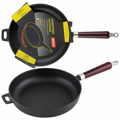 Сковорода чугунная 28 см с деревянной ручкой, высота 5.5 см, вес 3.5 кг