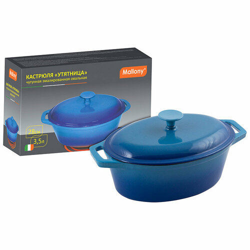 Утятница - овальная кастрюля 3.5 л из чугуна эмаль, вес - 5,50 кг, размер - 35х22х17 см, цвет Голубой