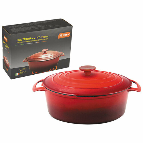 Утятница - овальная кастрюля 5.9 л чугунная эмаль, вес 6.0 кг, размер - 40х24х18 см, цвет - Красный