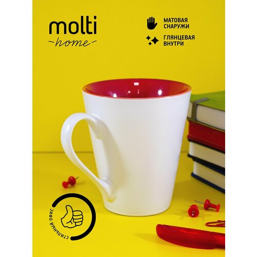 Кружка матовая для чая и кофе molti Bright Tulip двухцветная чашка подарочная 340 мл, черная с красным