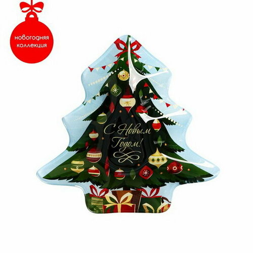 Блюдо стеклянное сервировочное "Ёлочка с подарками", 17.5x18x3 см