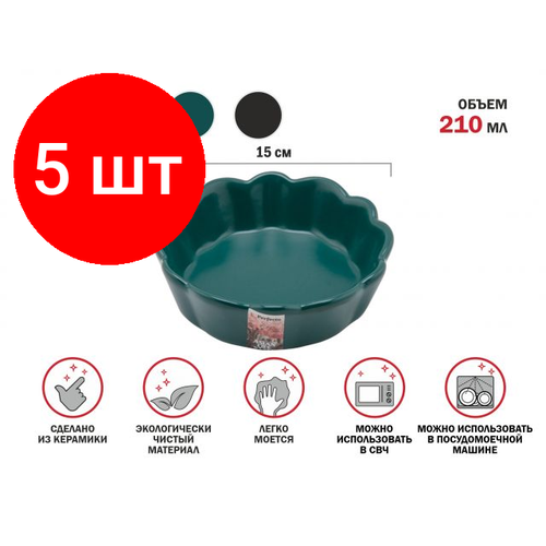 Комплект 5 штук, Салатник керамический, 15 см, серия ASIAN, зеленый, PERFECTO LINEA (17-131545)
