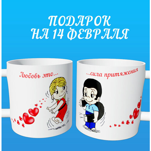 Парные кружки - подарок на 14 февраля, День святого Валентина, День всех влюбленных (набор 2 кружки) - "Любовь - это сила притяжения"