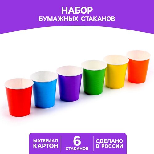 Набор бумажных стаканов «Разноцвет», 205 мл