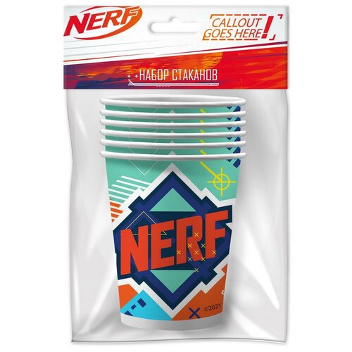 Набор бумажных стаканов ND Play NERF, голубой 250 мл 6штук