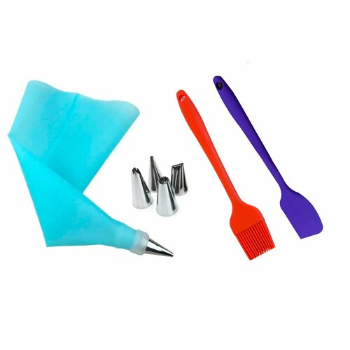 Кондитерский силиконовый мешок с 5 насадками, кондитерской лопаткой и шпателем